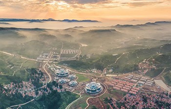 抬望眼,纪王崮下,尹家峪田园综合体沂蒙花开景区依然展示着新时代最美的风采。在泉庄这个偏居一隅的桃花源小镇,天外来客般地矗立起五座桃花造型的场馆,让所有人都耳目一新。沂蒙花开景区业态丰富,芽芽幻城、台湾风情、橘子布美学、鱼菜共生、国际太空体验等馆内恒温,内容多元,能满足不同年龄游客的旅行体验,科普教育,娱乐休闲……园区内在冬天被割除的、多种多样的植被,在春日里焕发崭新的生命,蓬勃生长。