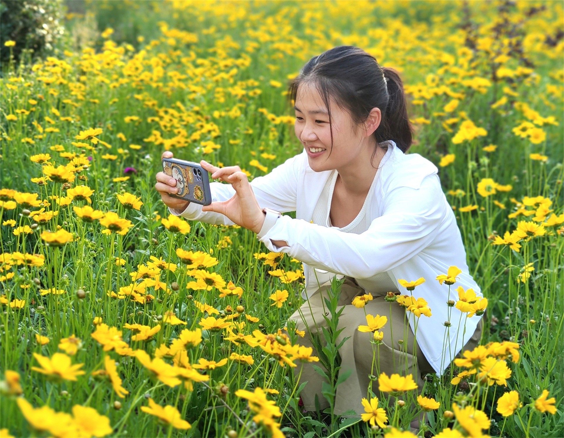 5月16日,郯城县经济开发区绿化园林一片金鸡菊盛开,黄澄澄的花海好像灿烂的阳光,成为初夏的“宠儿”。瞧,那一朵朵花盘宛如小小的太阳,微风吹拂,花朵摇曳生姿,美不胜收,呈现出一派生机、灿烂辉煌的景象,吸引众多游客打卡拍照与花儿留念。