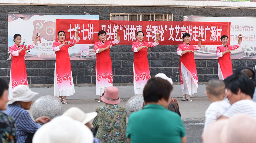 当日,山东省临沂市郯城县马头镇“讲故事 学理论”文艺宣讲队走进崔庄村,民间艺人用国家级非遗《鲁南五大调》的艺术形式展开文艺宣讲。据了解,“讲故事 学理论”文艺宣讲队还将走进社区、企业、校园宣讲演出,讲好党的故事、传唱红色经典。