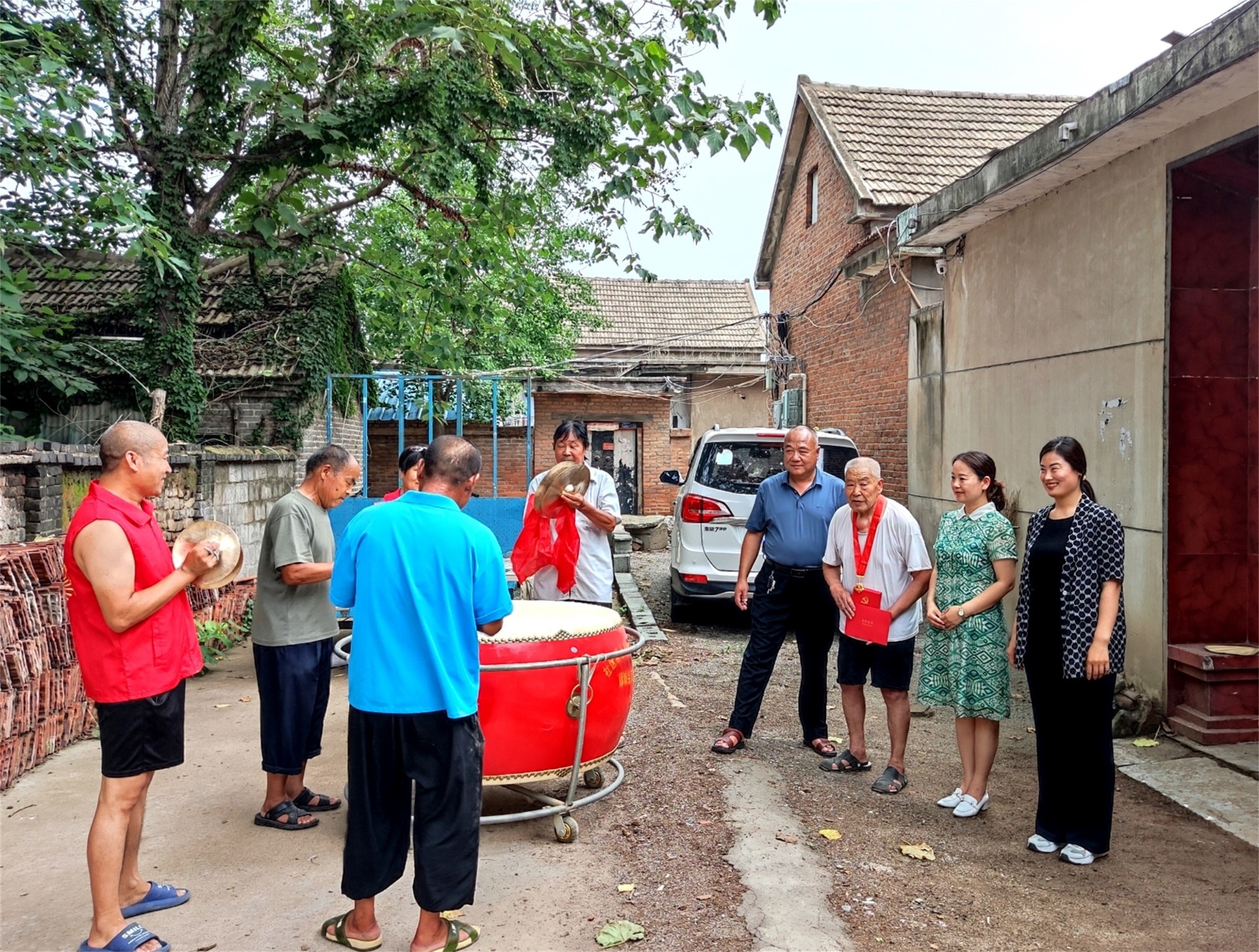 近日,喜庆的锣鼓响起来。郯城县马头镇南新庄村老党员闻庆楼家小院门口热闹非凡,社区村街与村民一起共同庆祝闻庆楼在党五十年。