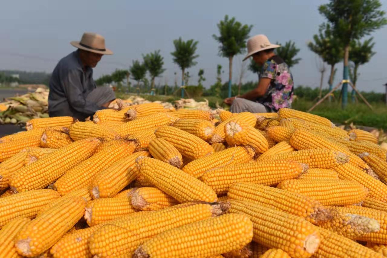 盛夏时节,山东省临沂市郯城县复耕种植的春玉米喜获丰收,农民抢抓农时收获晾晒,确保颗粒归仓。