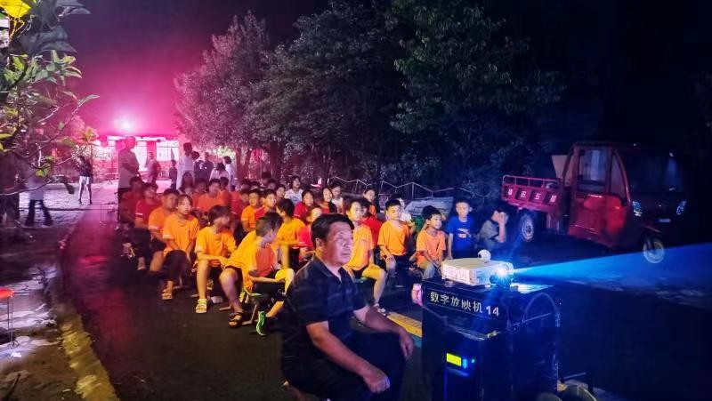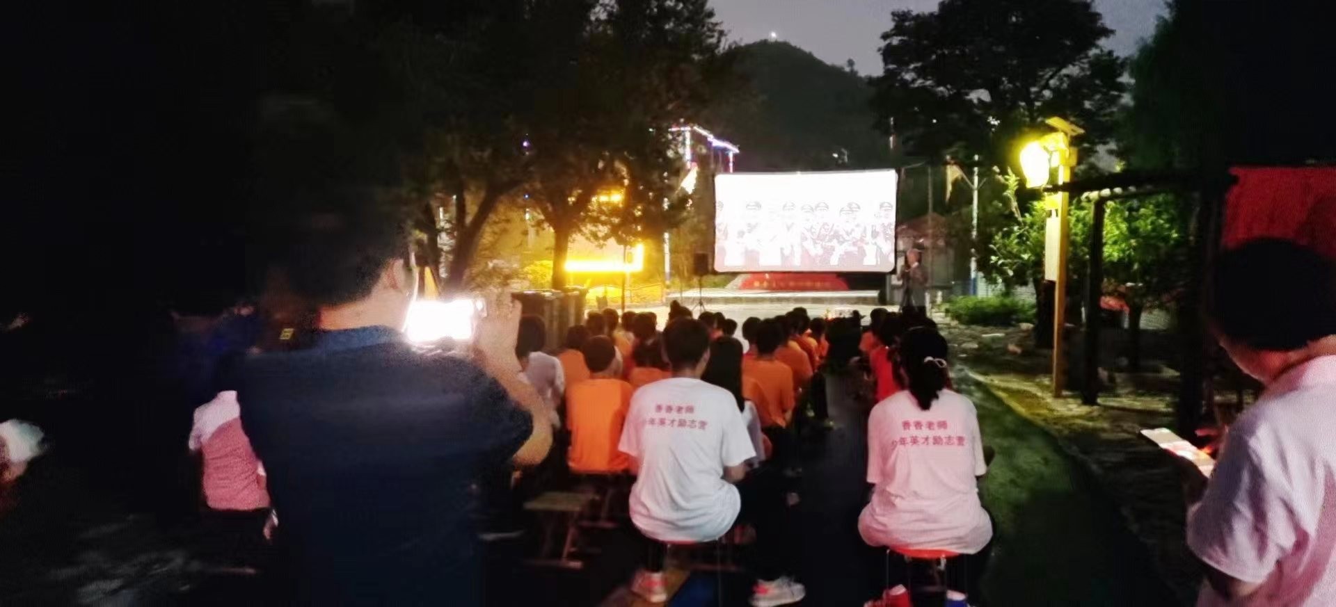 晚上,孩子们在习习的山风中观看电影,共同享受盛大阅兵视觉盛宴,感受祖国强大带来的自豪。