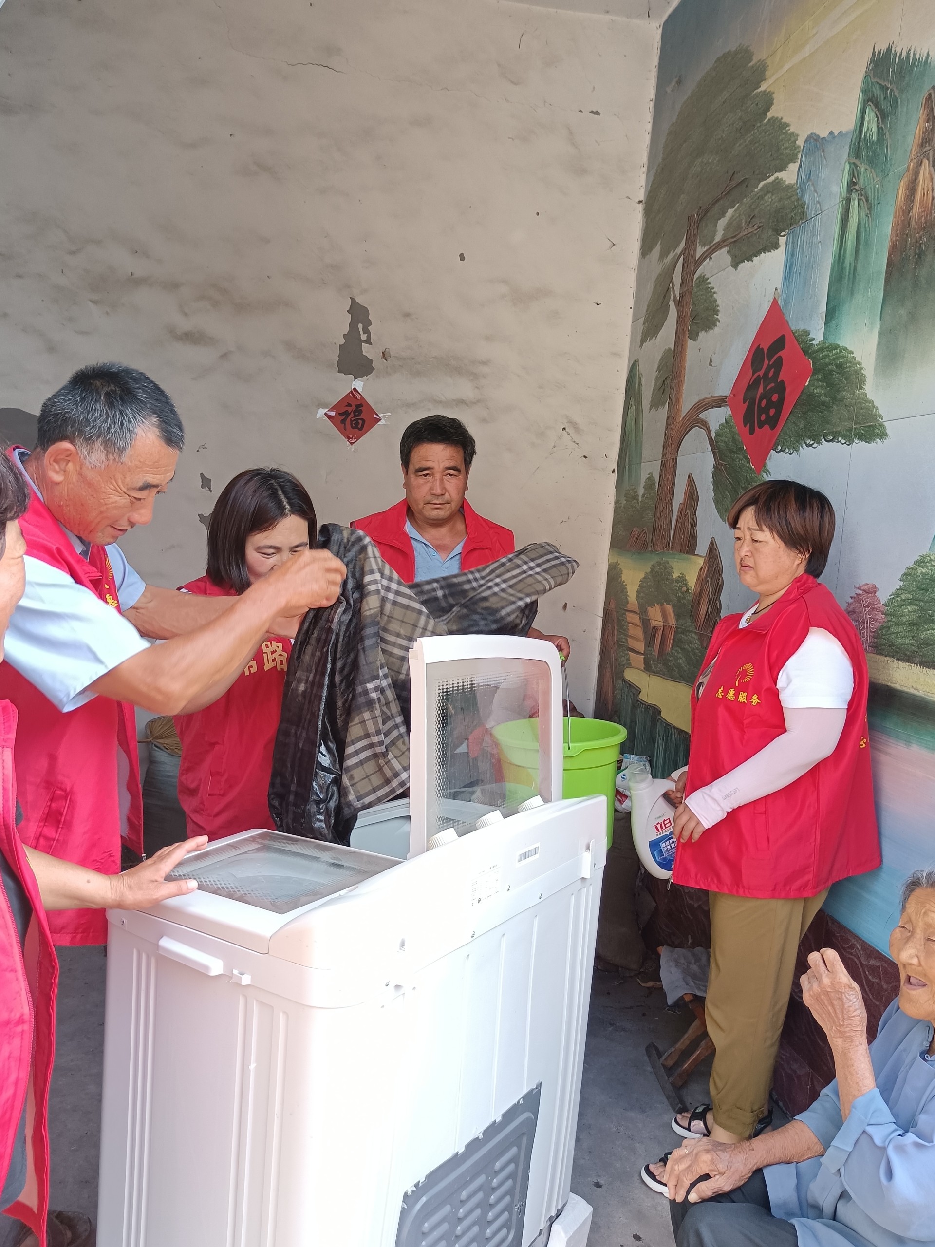 为了尽可能地帮助行动不便的老人和残疾人,让他们每天都能穿上干净整洁的衣服,常路村党总支购买了一台洗衣机,每个月志愿者们都会带着这台洗衣机到老人家里,拿出老人们这一段时间没有清洗的脏旧衣服,开始了忙碌的洗洗涮涮。伴随着洗衣机嗡嗡的声响,志愿者们在洗衣服的空闲之余也会帮助老人收拾一下家里的卫生,与老人们聊聊家常,嘱托老人们要注意身体,有什么问题就找村里的志愿者,一定随叫随到。同时志愿者们用微信视频的方式实现老人和子女们线上零距离对话,这不仅增进了志愿者们与老人们之间的感情,也让打工在外的子女们对家里的老人少了一份牵挂。