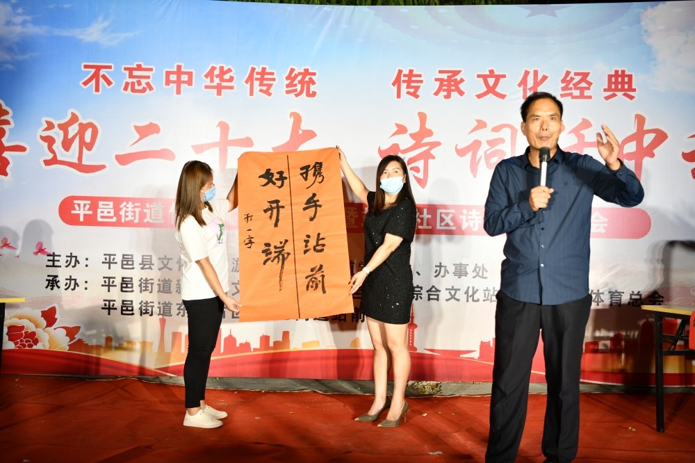 近日,由平邑县文旅局、平邑街道党工委等主办的平邑街道站前社区诗词比拼大会在社区群众文化广场举行,山东省级非物质文化遗产项目“平邑灯谜”代表性传承人阮风友应邀主持"猜灯谜"互动助兴。