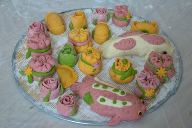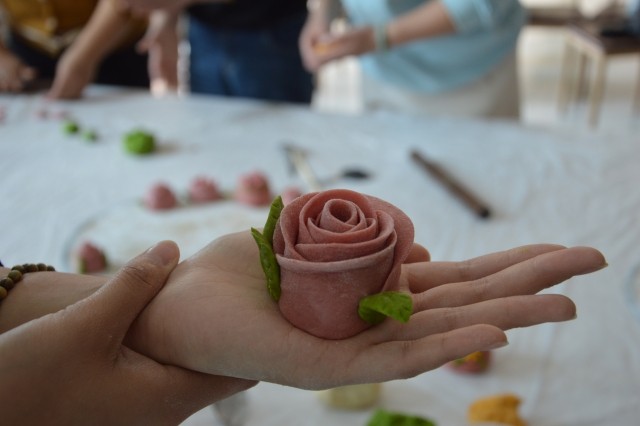 “大家在揉面的时候注意把面团揉得光滑一些,这样好做造型。”在专业老师的指导下,大家挽起衣袖,边动手边交流探讨,化身一个个面食专家,亲自定格“孝心鱼”形状。在一片欢声笑语中,大家将亲手制作的面食送入蒸锅,揭锅时冒出腾腾的热气,看着一个个造型多样、色彩丰富的花样面点,触发了大家对传统美食的记忆。