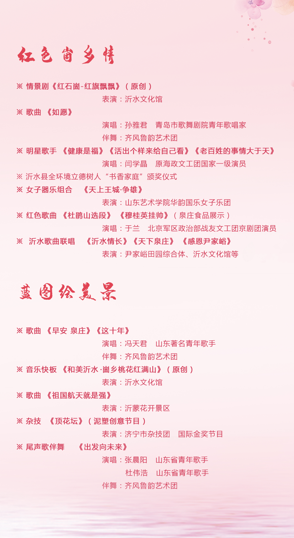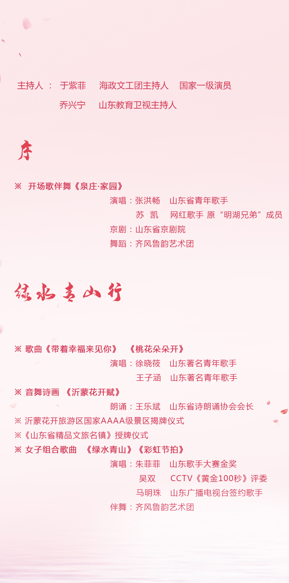 第十二届山东·沂水(泉庄)桃花艺术节开幕式节目单公布