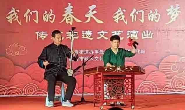 据兰山区柳青街道齐鲁园小区党支部刘慧英书记介绍,此次非遗文艺演出,有山东琴书、山东快书、川剧变脸等节目,千变万化的演出令人叫绝。