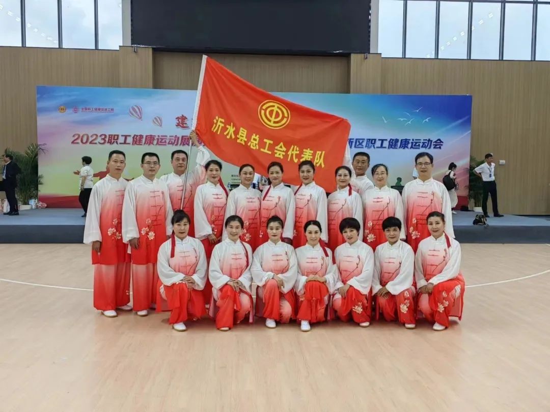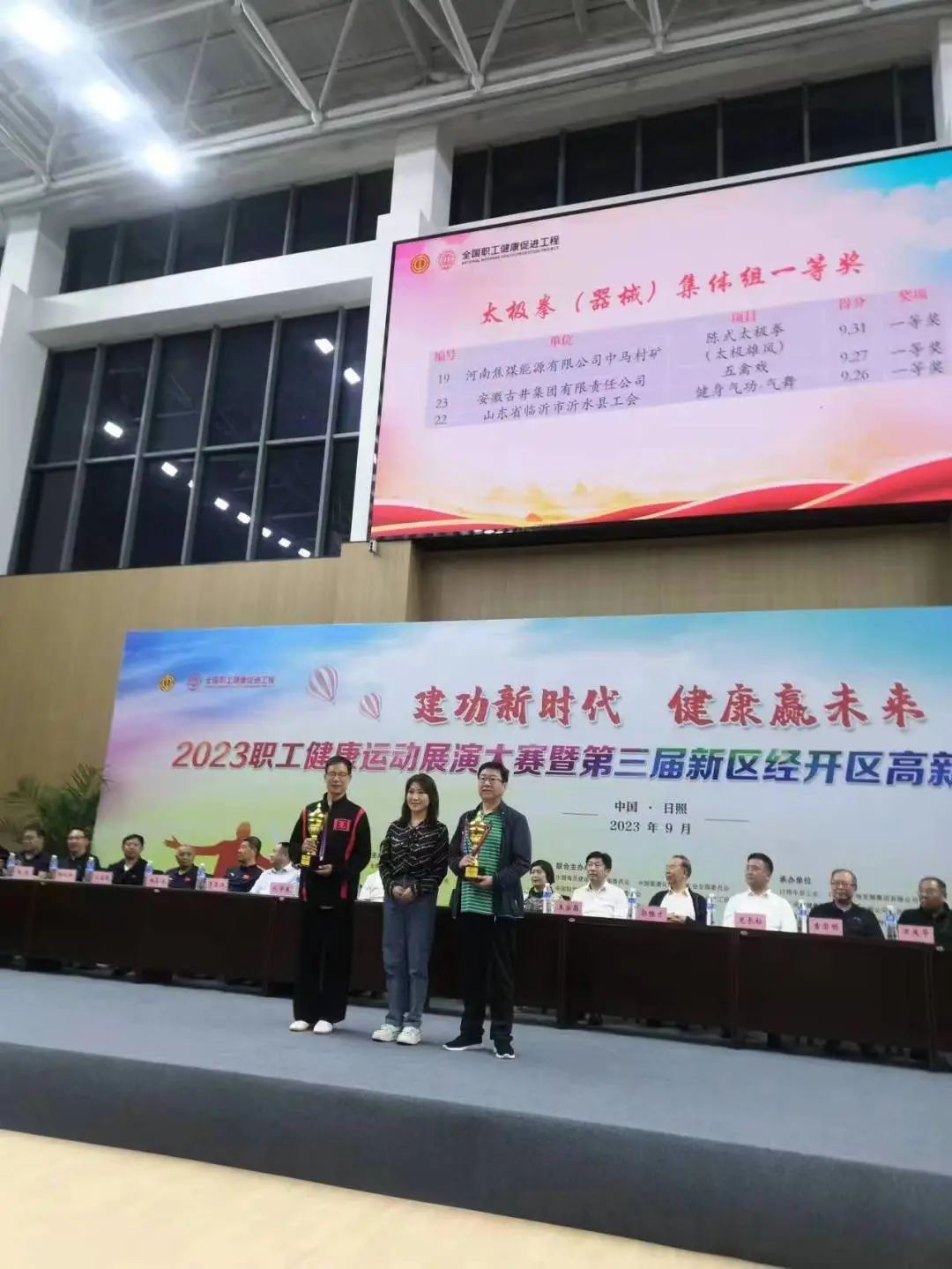 9月22日,2023全国职工健康运动展演大赛在日照举行。本次大赛共设工间操(舞)、太极拳两类展演项目和职工篮球、羽毛球两类竞技项目,来自全国76支代表队的近2000名职工参加。经过激烈角逐,临沂市职工代表队山东临沂新华印刷物流集团有限责任公司荣获篮球比赛一等奖第一名,赢得了冠军奖杯;沂水县八段锦协会荣获太极拳(器械)集体组健身气功-气舞一等奖、健身气功-八段锦二等奖。