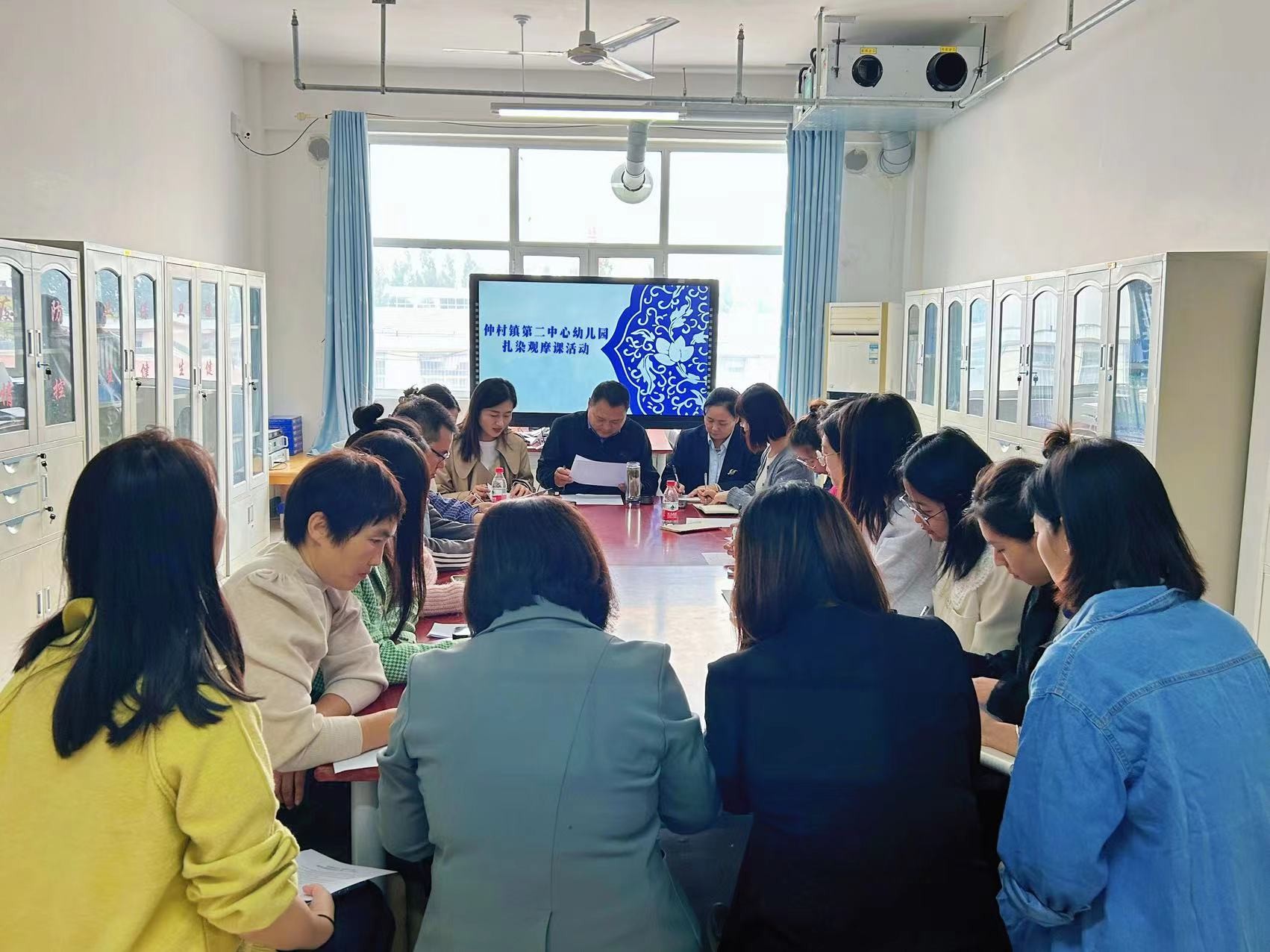 扎染是人们喜闻乐见的一种传统民间印染形式,是中国民间传统而独特的染色工艺。扎染的作品,图案千变万化,色彩艳丽,容易对幼儿产生强烈的吸引力,抓住幼儿这一兴趣点,10月19日,仲村镇第二中心幼儿园开展传统工艺扎染观摩课活动,仲村镇各公民办园长及相关负责人参加本次活动。