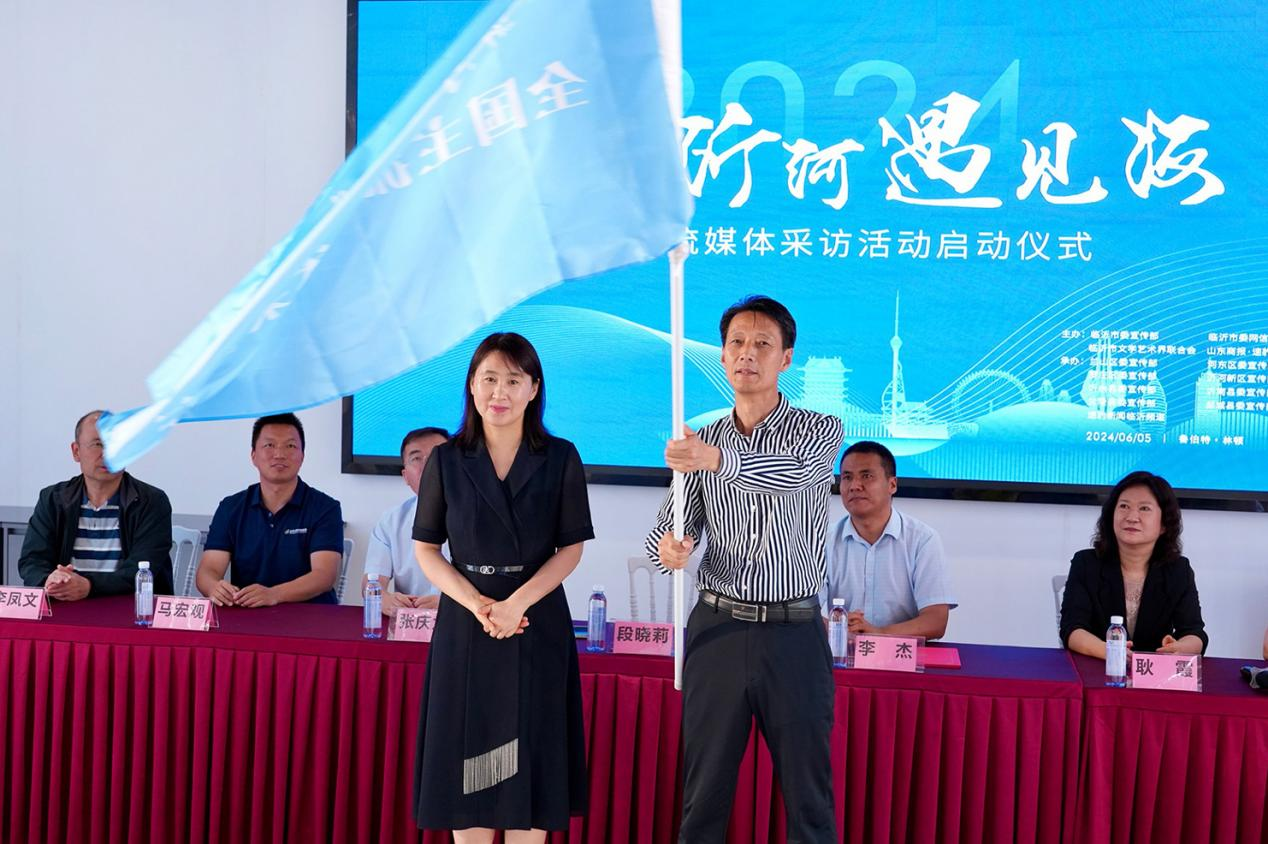 近日,由中共临沂市委宣传部、临沂市委网信办、山东商报·速豹新闻、临沂市文学艺术界联合会共同主办的“沿着沂河遇见海”全国主流媒体采访活动启动仪式在临沂市兰山区鲁伯特林顿国际宴会中心举行。临沂市委宣传部副部长、市委网信办主任段晓莉为“沿着沂河遇见海”全国主流媒体采访活动授旗。