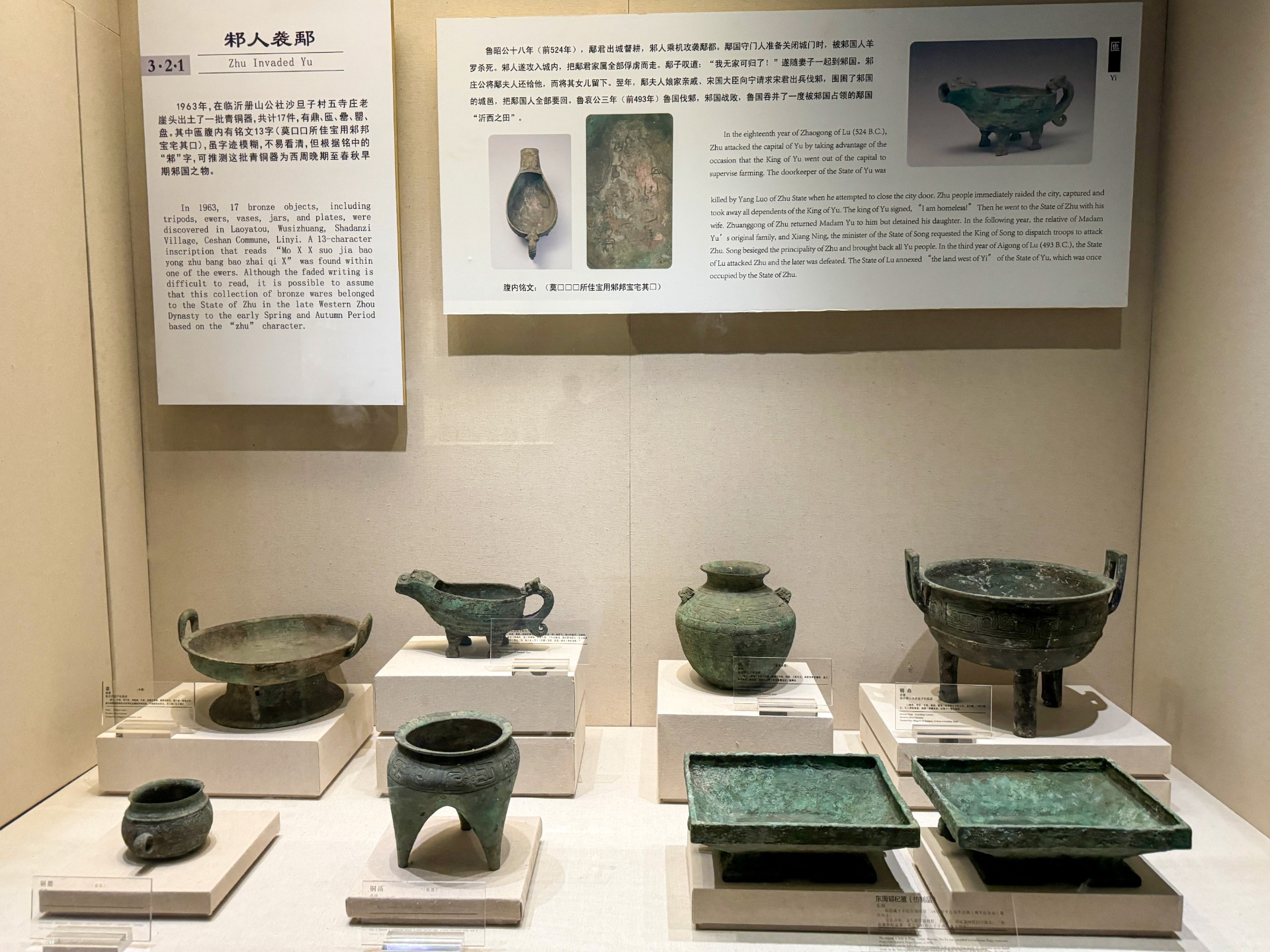 临沂市博物馆现馆藏文物7万余件(套),按质地共分石器、陶器、瓷器、铜器、铜镜、铁器、字画、书籍碑帖、钱币、金银器、骨器、印章、漆器、砚、木器、碑刻、石造像、汉画像石、砖纹、景泰蓝、瓦当、化石等24类别,以新石器时代、汉代出土文物和汉代画像石最为丰富,来自当地考古发掘及征集,有典型的地方特色和较高的研究价值。其中,有龙山文化蛋壳黑陶镂空高柄杯、西汉“金缕玉套”、东汉吴白庄汉画像石墓等馆藏精品,以及齐国刀币数量之多,保存之完整,品类之多样,在全国实属罕见。