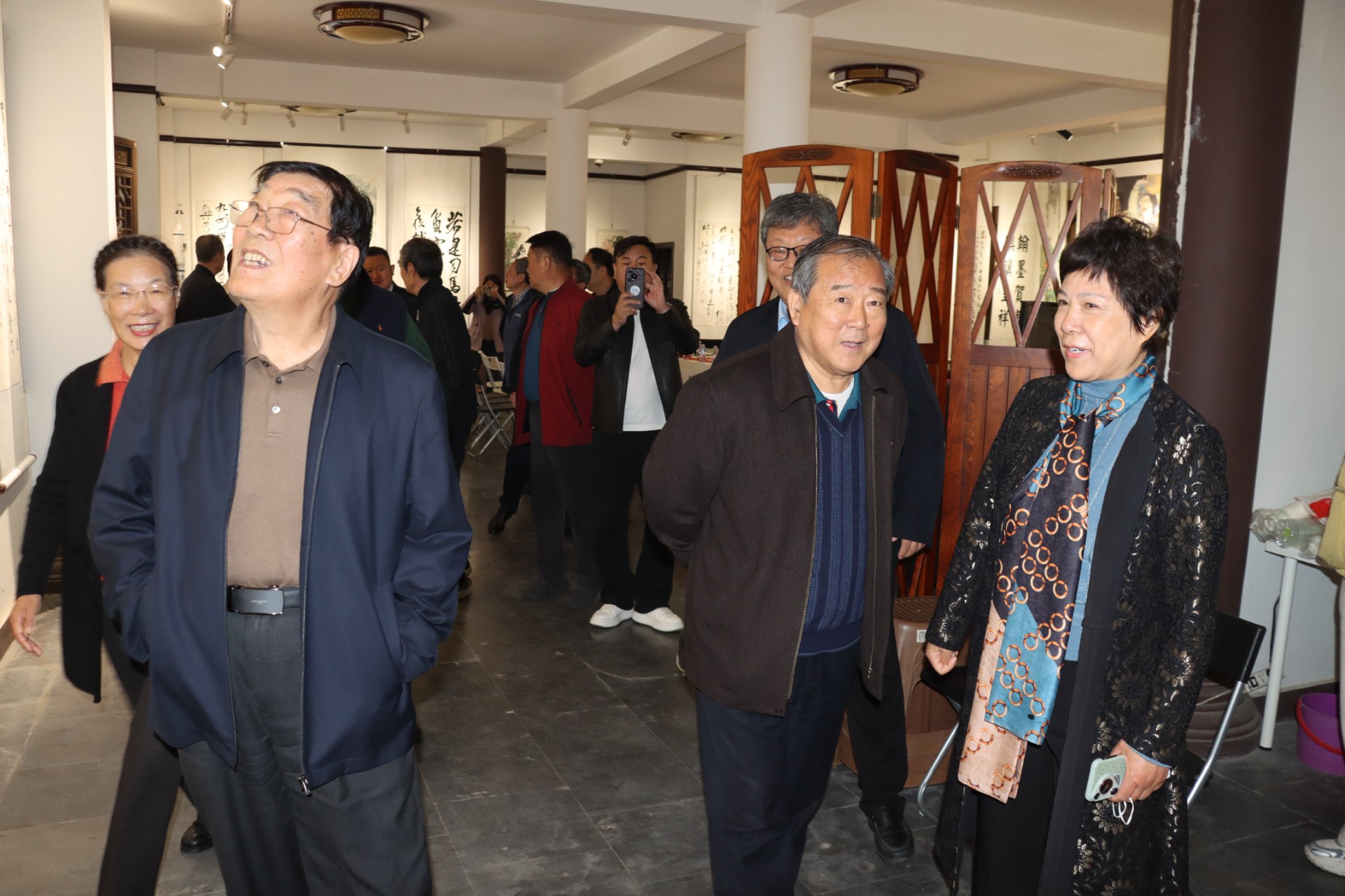 临沂市人大常委会原党组书记、第一副主任、临沂市关工委主任、著名书法家朱绍阳,淄博市人大常委会原党组书记、第一副主任,临沂市委党建工作领导小组原副组长、著名书法家王顶岐,临沂市委原常委、副市长、党组副书记、临沂诗词学会会长尹长友,临沂市中级人民法院原党组副书记、副院长、临沂诗词学会副会长刘晓霞,临沂市交警支队原政委尹承志,临沂市教育局原副局长陈景山,临沂市财政局原一级调研员宋克伟,山东省民间文艺家协会副主席、临沂市书法家协会主席、临沂市文联办公室主任徐志强,临沂市人民公园管理处主任孔亚庆,齐鲁刀迷汇会长张记刚,著名画家宋鲁源,临沂市书协原副主席、著名书法家刘大海、著名画家王云霞、临沂市书法家协会副主席兼秘书长张健,临沂市书法家协会主席团委员徐永、伊吉鹏,临沂市青年书法家协会主席范东旭,临沂市书法家协会监事、华鲁彩印有限公司董事长刘正涛,白山市书法家协会副秘书长张家良、济南恒泰达电气设备安装有限公司总经理王长军、济南农行原行长柏艳、济宁食品有限公司总经理万小艳,以及沂蒙刀迷代表及媒体记者参加了开幕式。