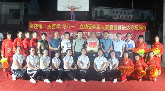 7月30日,沂水县高庄镇为西良村荣立三等功的闫传坤家庭举办“庆百年·迎八一”喜报送到专场演出,用这种隆重的方式向立功军人及家属表示崇高的敬意。