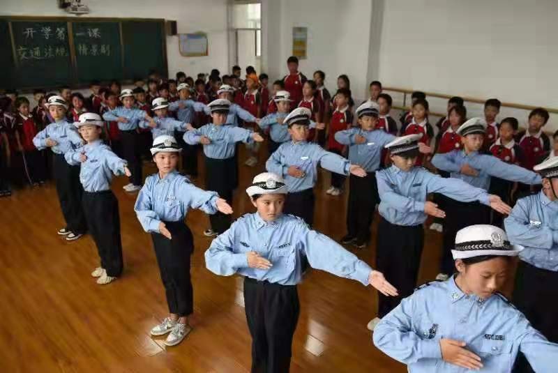 当日是开学第一天,山东省临沂市郯城县马头镇中心小学“小演员”为同学们上了一堂别开生面的“情景剧安全课”,旨在通过模拟交通场景,宣传交通法规,增强同学们“红灯停绿灯行”的正确过马路意识。(张晓飞 房德华 王琨)
