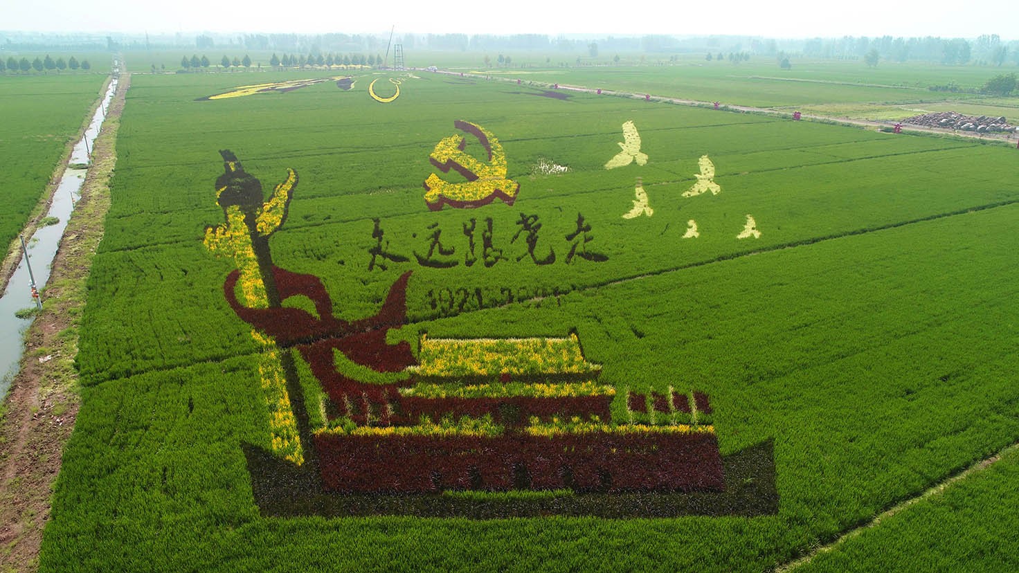 近日,山东省临沂市郯城县归昌乡姜湖贡米农业产业园内的创意稻田画进入最佳观赏期,呈现一幅幅“塞上江南 鱼米之乡”的美丽画卷,吸引众多游客前来观赏。