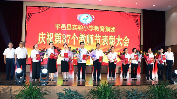 会上,教育集团副校长杨尚峰宣读了《平邑县实验小学教育集团关于表彰2021年优秀教师的决定》,与会领导分别为受表彰的优秀教师、优秀班主、蒙阳名师、名校长、领军人才等颁奖; 王善红首先向老师们表达节日的祝贺和问候,回顾过去,学校每一个精彩的背后都浸透着老师们辛勤的汗水,孩子点滴的成长都凝聚着老师们的心血。要求每一位老师都要珍惜与孩子一生仅此一次的相遇,继续发扬不怕困难,勇挑重担,攻坚克难,甘于奉献的“实小精神”坚守“潜心教书 静心育人”初心,践行“为党育人 为国育才”使命,为党的教育事业不懈奋斗!