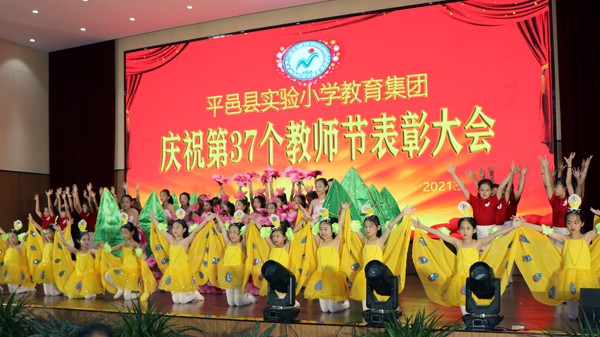 9月10日,临沂市平邑县实验小学教育集团庆祝第37个教师节暨表彰大会在第六校区新落成的礼堂举行,实验小学教育集团校长王善红出席会议并讲话,集团领导班子成员、各校区中层以上服务管理员、校区家委会成员及本年度各类获奖教师参加会议。