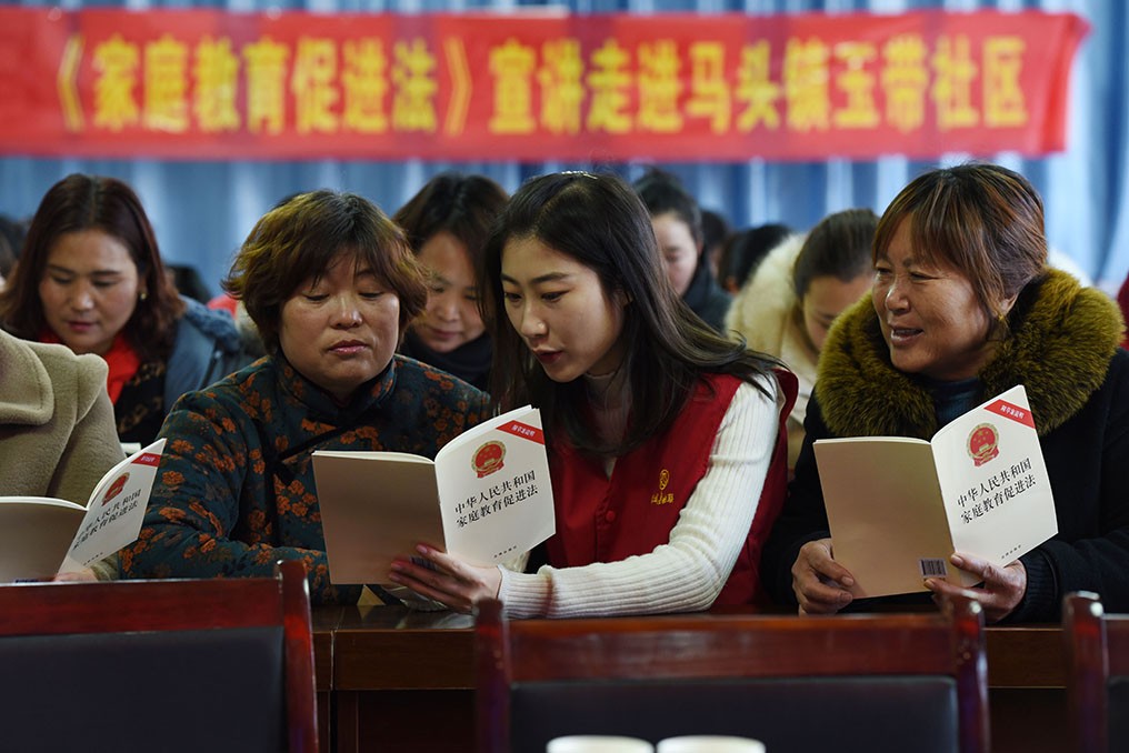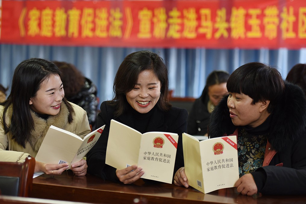 当日,《中华人民共和国家庭教育促进法》正式颁布实施,山东省临沂市郯城县妇联普法志愿者深入乡村、社区和家庭,多形式宣传和解读《家庭教育促进法》颁布实施的目的和意义,旨在引导全社会注重家庭、家教、家风,促进家庭教育、学校教育、社会教育紧密相结合,使千千万万个家庭成为社会和谐、经济发展的重要基点。(房德华)