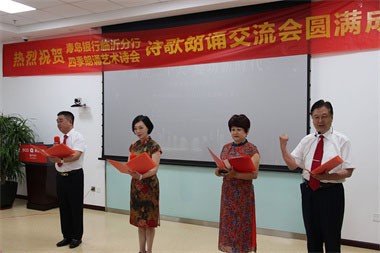 青岛银行临沂分行副行长邓英玉女士、四季朗诵艺术诗会会长石增春分别发表了热情洋溢的致辞。