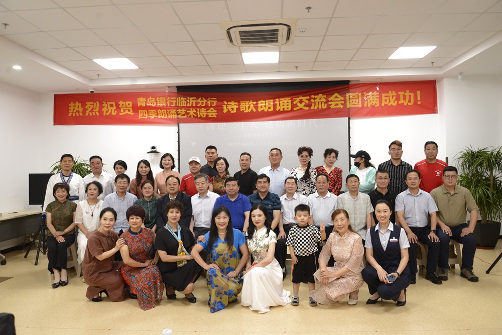 今天,青岛银行临沂分行与四季朗诵艺术诗会联合举办的“喜迎二十大建功新时代”诗歌朗诵会如约而至,一起感受中华文明的璀璨辉煌,品诗意人生,看四季风光。在这个充满激情的日子里,大家相聚在青岛银行临沂分行诵爱国经典,歌盛世中华!