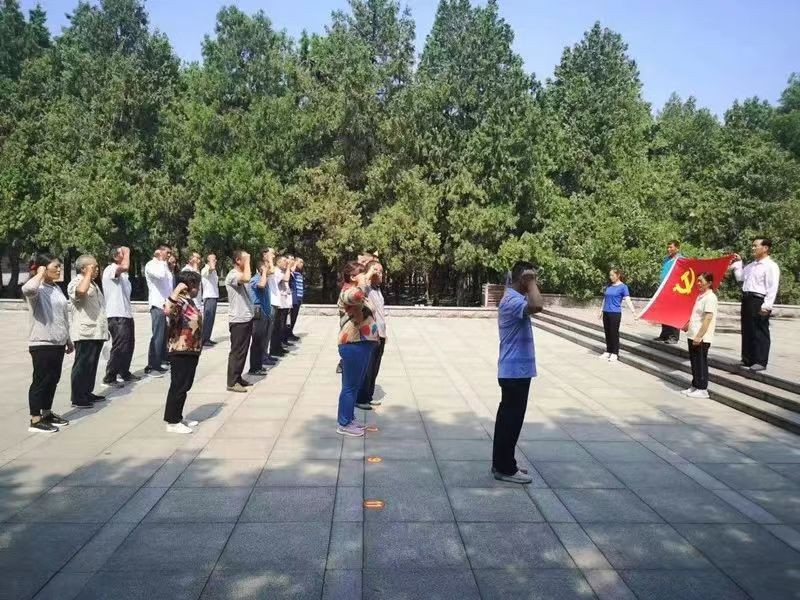 在孟良崮战役纪念馆,大家深刻了解了革命前辈的丰功伟绩,在烈士墓区,大家怀着庄严肃穆的心情向革命烈士鞠躬致敬。最后,党员们在英烈亭前,面对鲜红的党旗重温了入党誓词。