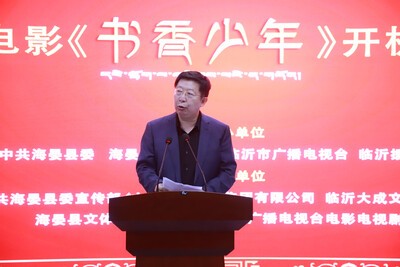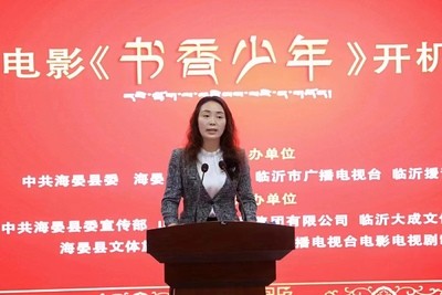 临沂大成文化传媒有限公司总经理王中霞在致辞中表示,电影《书香少年》在海晏县开机,以影视艺术的形式让沂蒙精神在高原上获得传播与弘扬,企业会不遗余力地参与其中、倾力支持影片拍摄。