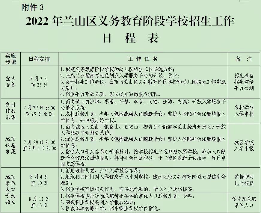 3.2022年兰山区义务教育阶段学校招生工作日程表