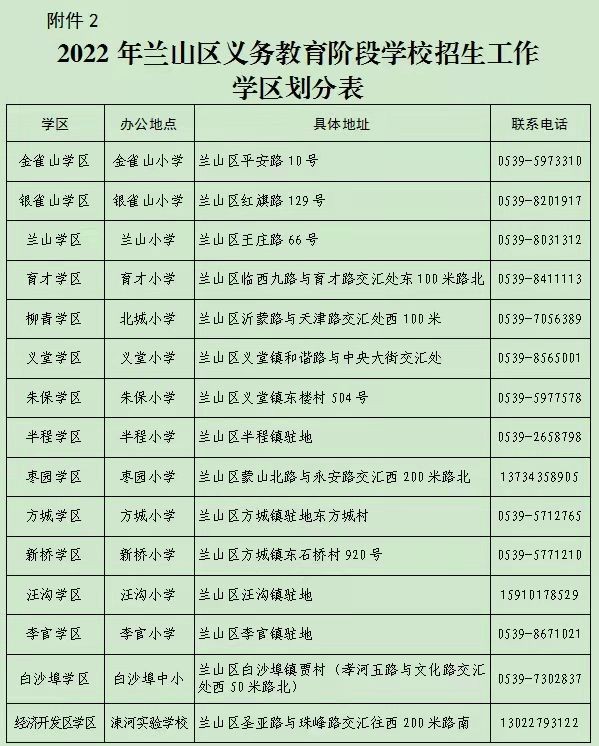 2.2022年兰山区义务教育阶段学校招生工作学区划分表