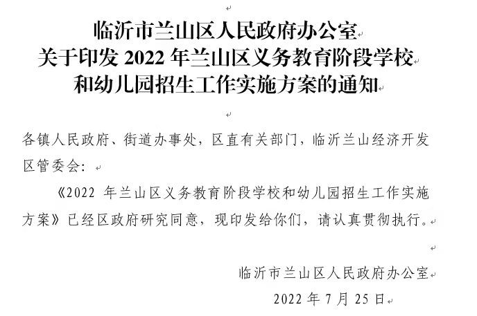 7月25日下午,2022年兰山区义务教育阶段学校和幼儿园招生工作会议召开,会上公布了相关政策及兰山区学区划分。