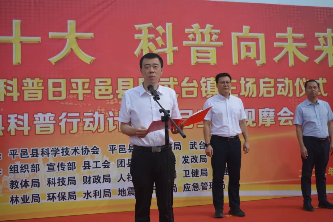活动由县科协党组书记、主席韩炳璋同志主持。仪式上,武台镇党委书记胡海洋同志致辞,县委副书记任大鹏同志为南武沟村科普示范点揭牌,县科协党组成员、副主席巩哲同志捐赠科普图书,最后由任大鹏同志作重要讲话。