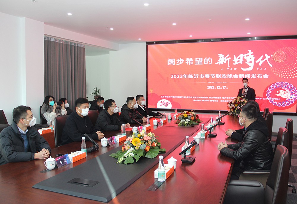12月17日,“阔步希望的新时代”临沂市2023年春节联欢晚会发布会在泰鲁时代城成功举办。临沂市广播电视台党组副书记、总编辑朱奇文及相关部门负责同志,临沂市2023年春节联欢晚会冠名企业、媒体代表齐聚一堂,共同见证了这一重要时刻。发布会由临沂市广播电视台主持人李洺旭主持。发布会现场,临沂市2023年春节联欢晚会先导片正式对外发布。临沂市广播电视台电视综合频道总监李文在场分享了节目亮点并公布了部分临沂春晚亮点节目。