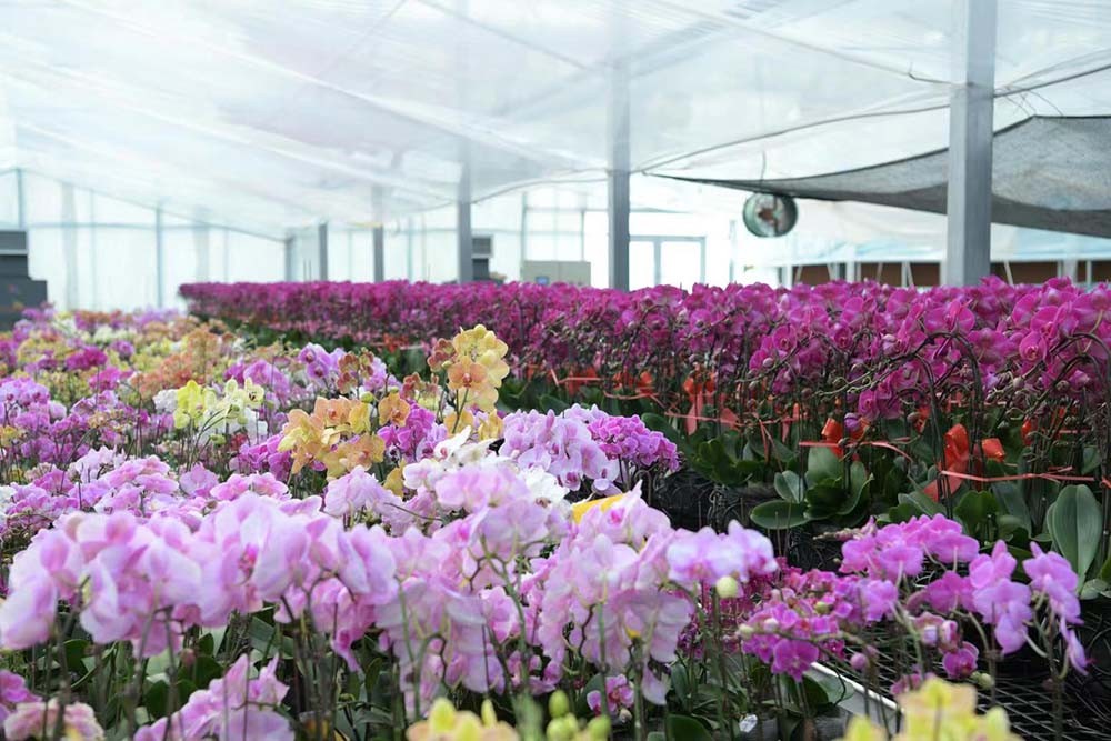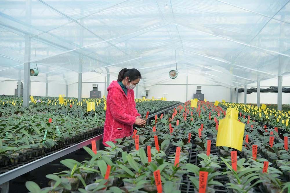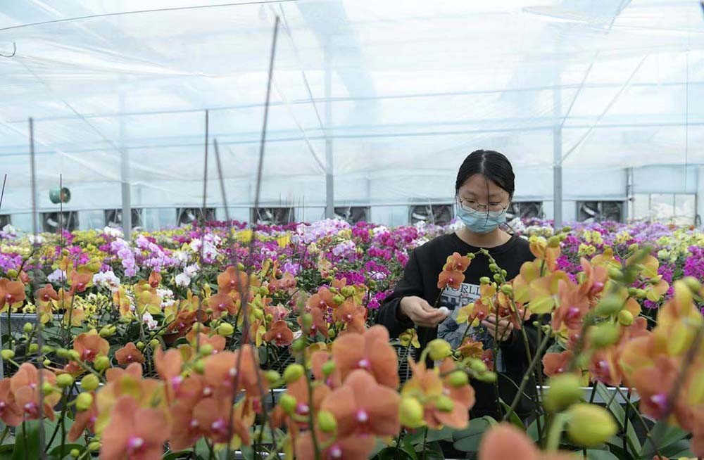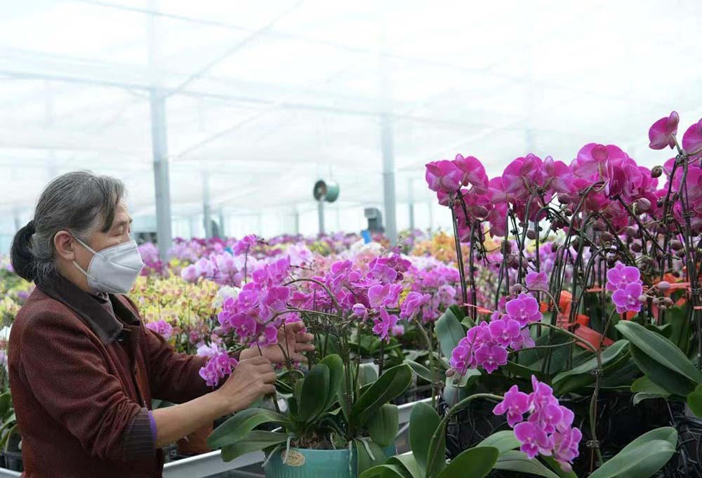 2023新年来临,山东省临沂市临沭县一兰花种植基地的温室大棚暖意融融,各色蝴蝶兰竞相开放。工作人员忙着在智能温室对500余个品种的蝴蝶兰进行管护、整型、组盆、外运,10万余株蝴蝶兰将陆续投放市场,以满足元旦春节期间群众的购买需求。
