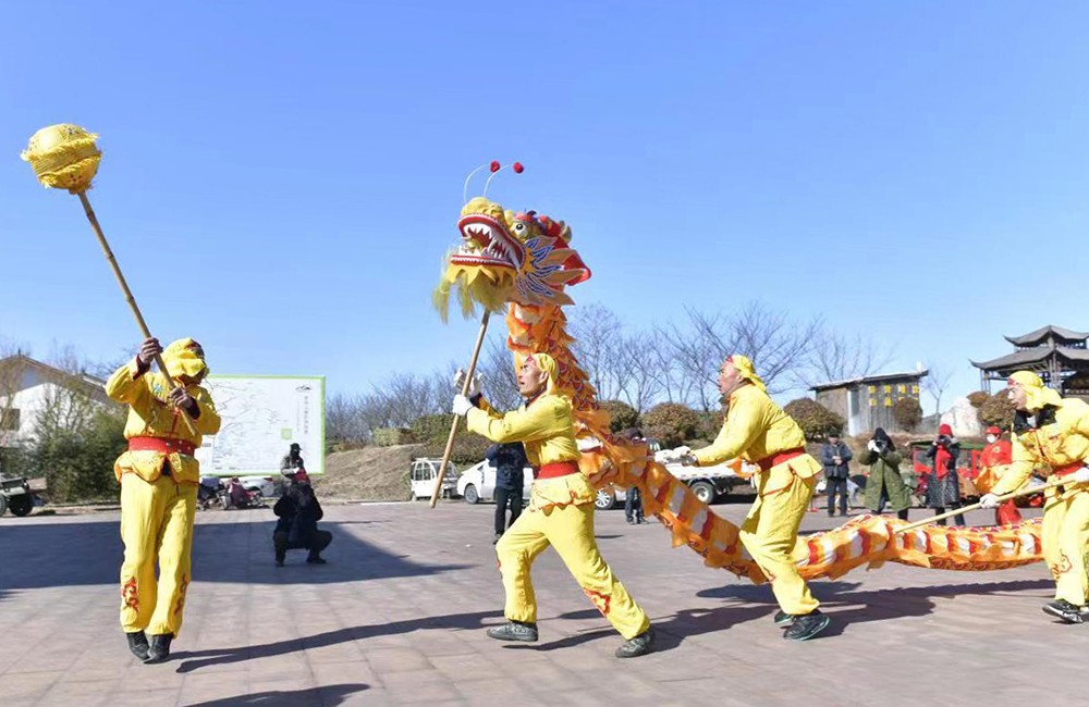 在苍马山风景区,来自临沭街道苍隆居的民俗特色表演队伍盛装巡演,长龙闹新春,秧歌队齐助阵,扭出了乡村振兴的新风貌,舞出了临沭发展的新气象,精彩的演出吸引了游客前来争睹炫技风采。