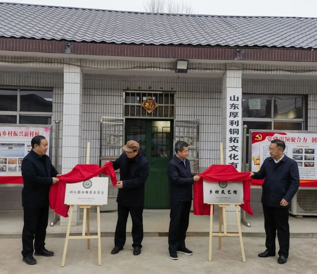 2月22日上午,临沂市文联党组书记、主席战祥春,市文联党组成员、副主席邵长满,临沂市民间文艺家协会主席徐志强及协会部分负责人一行,就实施文艺驻村计划到兰陵县矿坑镇实地调研,并为“乡村民艺馆”和“铜拓艺术专业委员会”揭牌。中共兰陵县委常委、宣传部长宋志强,县文联主席吴仕强,矿坑镇党委副书记、镇长乔宏涛等陪同。