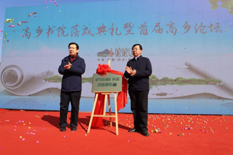 王世农、黄发有为高乡书院揭牌;张炜、厉彦林为《万松浦》杂志读者俱乐部揭牌;张炜、黄发有先后讲话,对高乡书院今后发展提出了宝贵意见和建议;主持人宣读万松浦、济南垂杨、临沂东夷等兄弟书院发来的贺信;高乡书院院长赵德发致答谢辞。