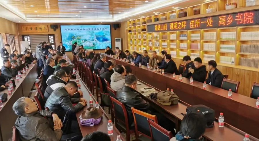 群雁盘旋兆吉祥,阳春布德泽万物。早春二月,春和景明,一处依托秀丽山水、植根深厚文化沃土的现代书院——高乡书院在临沂市莒南县娘娘山田园综合体落成,并于2023年2月26日举行了隆重揭牌仪式。中国作家协会副主席、著名作家张炜,山东省委老干部局原局长、著名作家厉彦林,省政协常委、科教文卫体委员会副主任王世农,省作家协会主席、山东大学教授、著名评论家黄发有,省作家协会原副主席、著名作家赵德发,临沂市副市长王映海,市委宣传部副部长王永凤,中共莒南县委书记、临港开发区党工委书记黄慧林,县委副书记、县长厉伟,县政协主席赵洁,县委常委、宣传部部长、县教工委书记张华,县政府副县长朱礼珂等各级领导和知名文艺界人士及社会各界共160余人参加仪式。