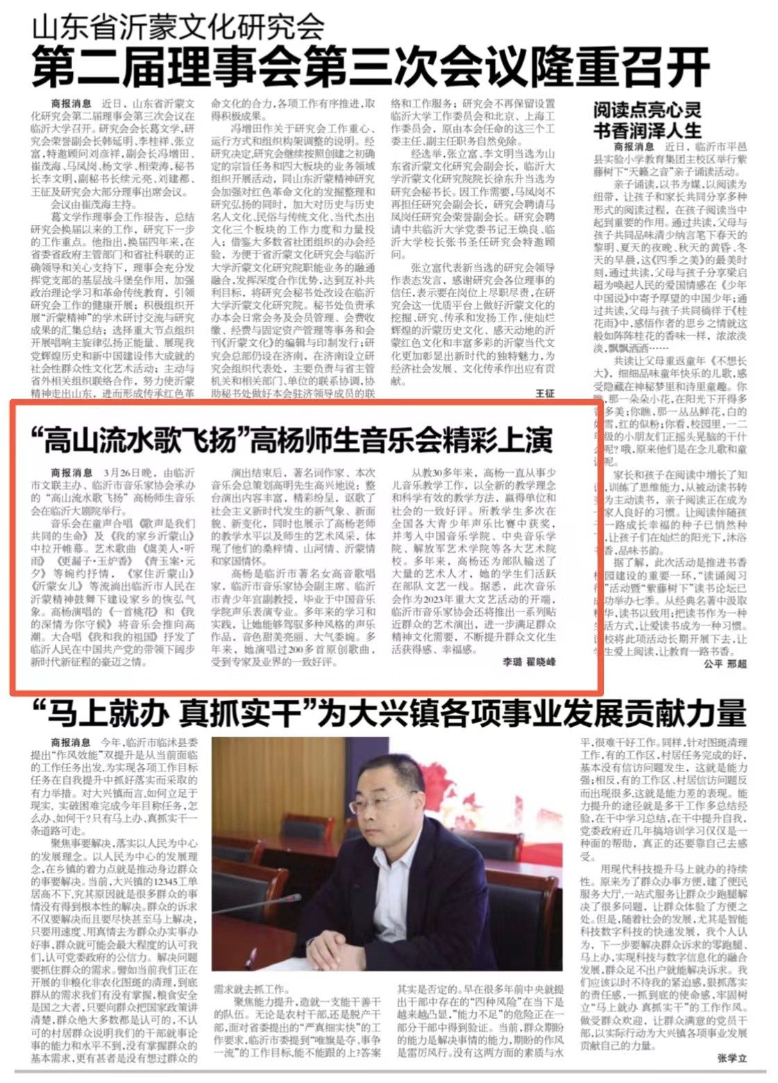 据悉,此次音乐会作为2023年重大文艺活动的开端,临沂市音乐家协会还将推出一系列贴近群众的艺术演出,进一步满足群众精神文化需要,不断提升群众文化生活获得感、幸福感。