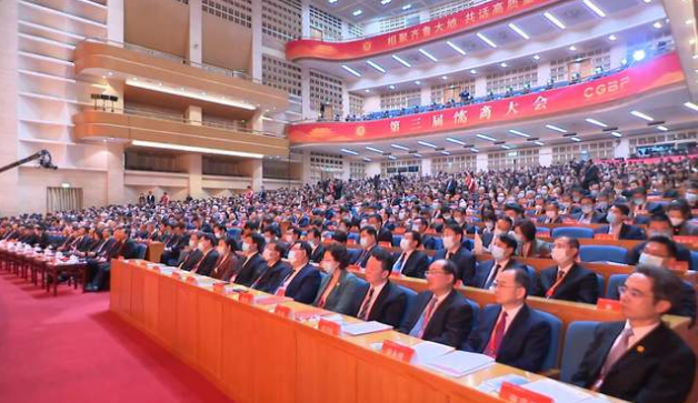 3月29日上午,第三届儒商大会开幕式在山东会堂举行。本届儒商大会,以“相聚齐鲁大地、共话高质量发展”为主题,来自境内外企业界、金融界、商协会、科技教育界、侨界等各界宾朋,相聚齐鲁大地,共叙儒风乡情,共谋高质量发展。群贤毕至、人才云集,展现了山东极强的号召力,折射出儒家文化跨越国界的强大凝聚力。
