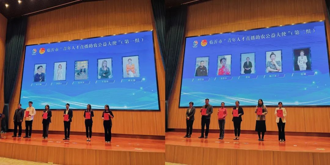 为临沂市“青年人才直播助农公益大使”代表颁发聘书。