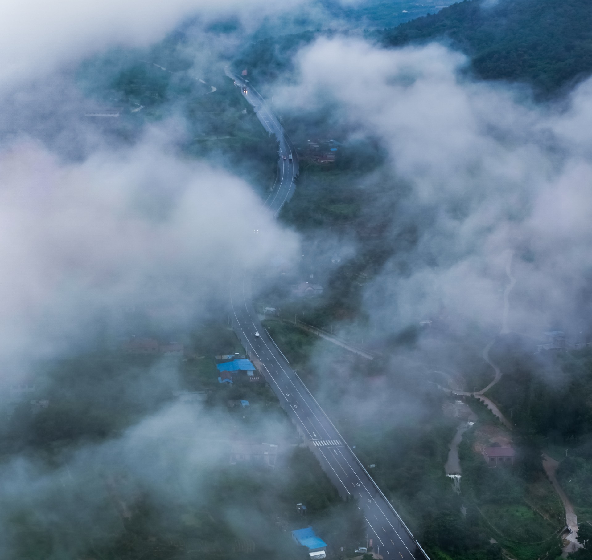 盛夏时节,行驶在S231沂蒙公路上,晨雾缭绕,层林叠翠,花香四溢,风景如画。