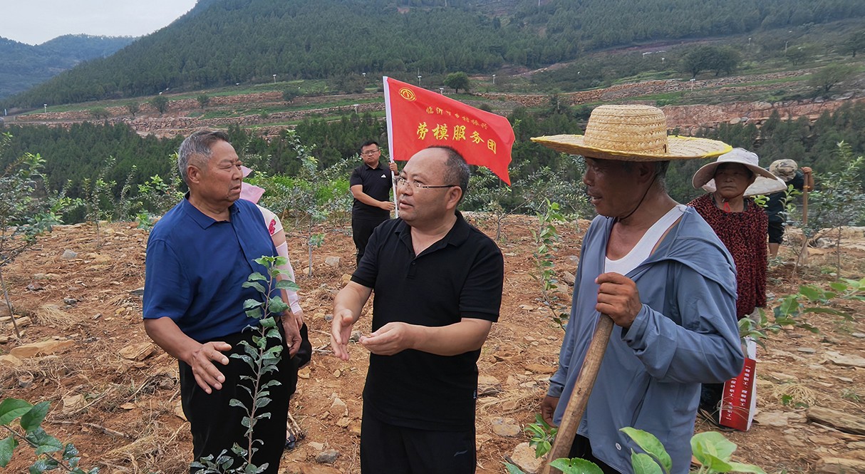 在九间棚金银花种植地,全国劳动模范刘嘉坤与牛庆花等人对不用化肥、不用化学农药、不用人工合成激素、不用地膜、不用除草剂、不用转基因种子的“六不用”有机金银花展开讨论,探索发展高质量有机农业的成功路径,“读万卷书不如行万里路,行万里路不如名师指路!”九间棚的一名村民有感而发。