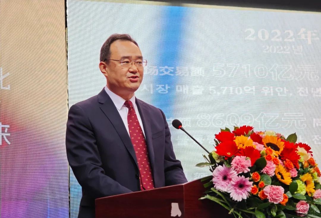 苟宏水宣布2023首届中国(临沂)跨境电商博览会暨中韩贸易交流会开幕。