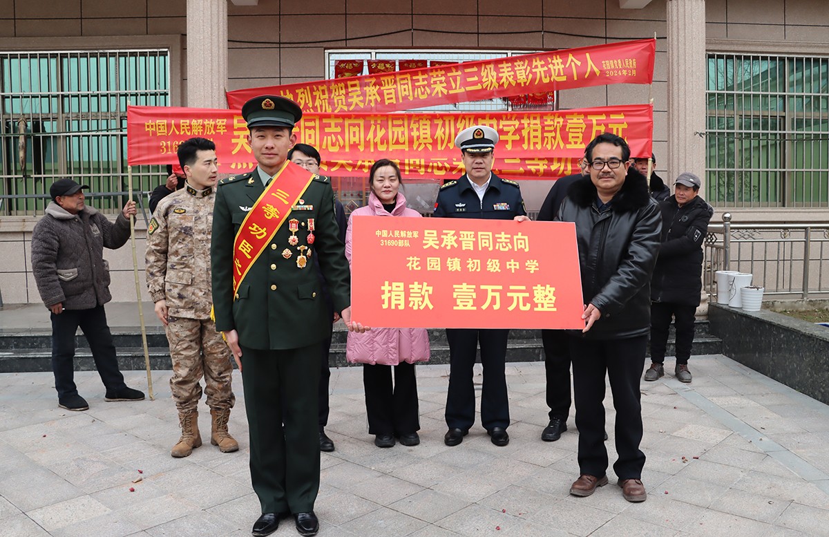 这次探亲回家又为花园镇初级中学捐款1万元,用于支持家乡的教育事业,他的爱心举动彰显出一名优秀战士的赤子之心和家乡情怀。