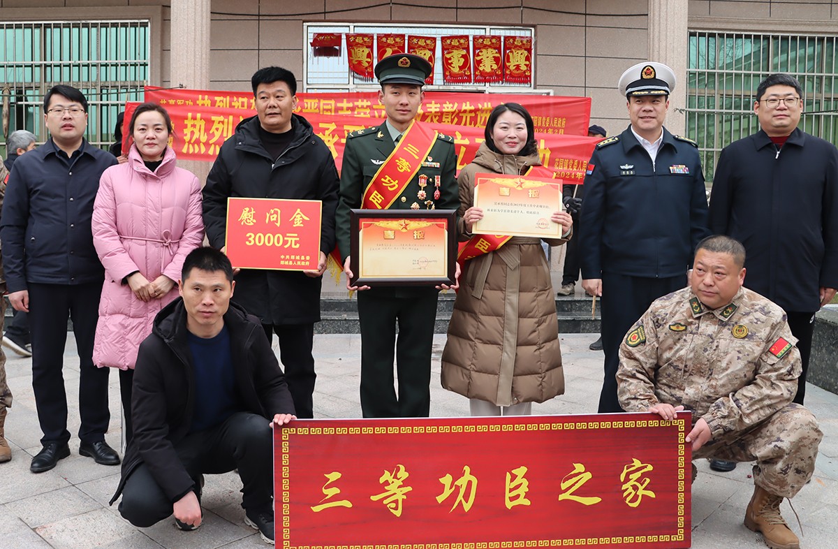 为弘扬新时代拥军优属光荣传统,增强军人荣誉感和军属自豪感,2月20日,郯城县花园镇为荣立三等功的刘湖村现役军人吴承晋送上立功喜报、“三等功臣之家”牌匾、奖金以及党和政府对军人军属的问候和祝福,不断激发现役军人建功军营、报效祖国的热情。