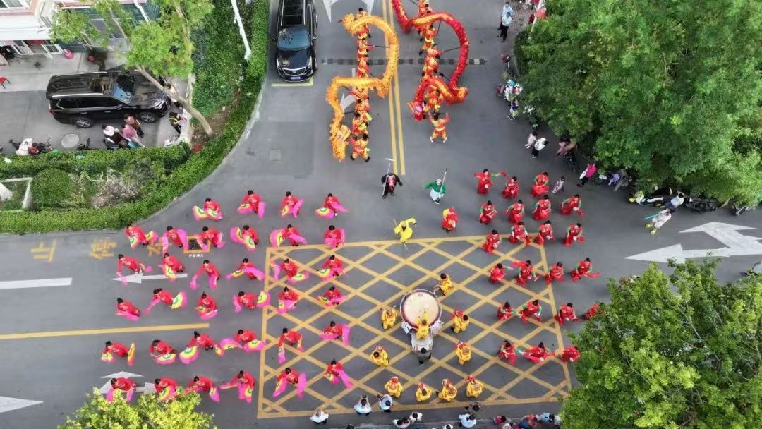 活动现场锣鼓喧天,热闹非凡。伴着强劲有力的鼓点,红黄两色的巨龙腾空而起,瞬间点燃了现场观众的热情。火红的绸带伴着腰鼓的节拍在空中舞动,彩色的扇子时而开合,时而翻飞,传递着无尽的喜悦,翻滚的巨龙将现场的气氛推向高潮,引来无数喝彩。活动在开场舞《俺家就在沂蒙山》中正式拉开序幕。