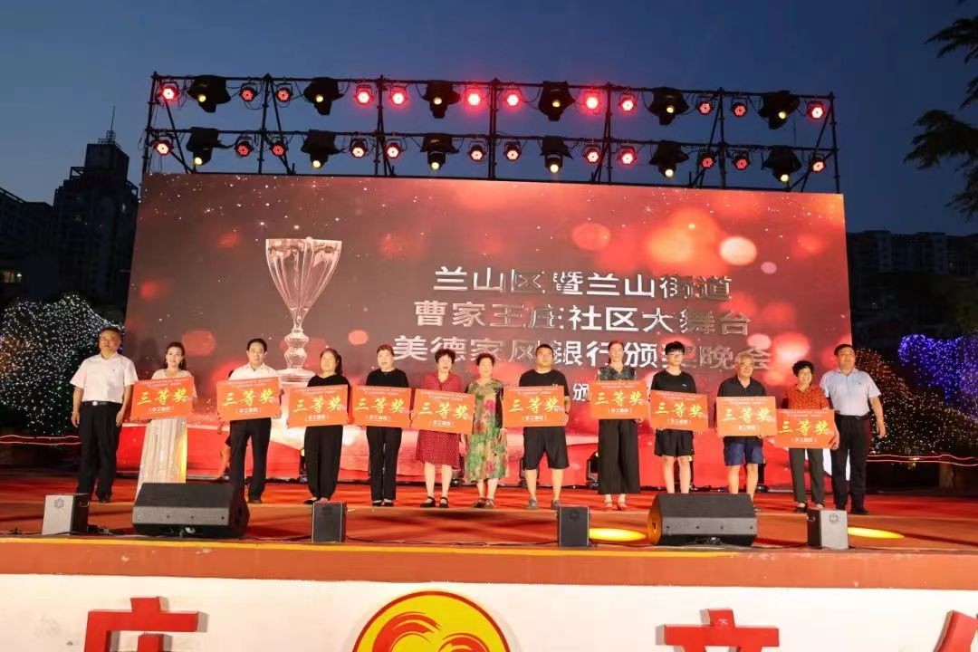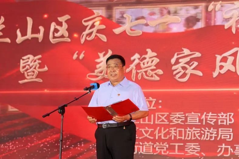 为庆祝中国共产党成立103周年,6月30日晚,临沂市兰山区庆七一“社区大舞台”群众歌会暨“美德家风银行”颁奖晚会在曹家王庄社区同心文化广场举行。临沂市委宣传部四级调研员苏桂友,兰山区委常委、宣传部部长王辉,兰山区文化和旅游局党组书记、局长张作伸,兰山街道党工委书记姜修伟等领导出席。山东兰华集团股份有限公司党委书记、董事长管照军,曹家王庄社区党总支书记、居委会主任、兰华集团党委副书记、副董事长曹祥思陪同。