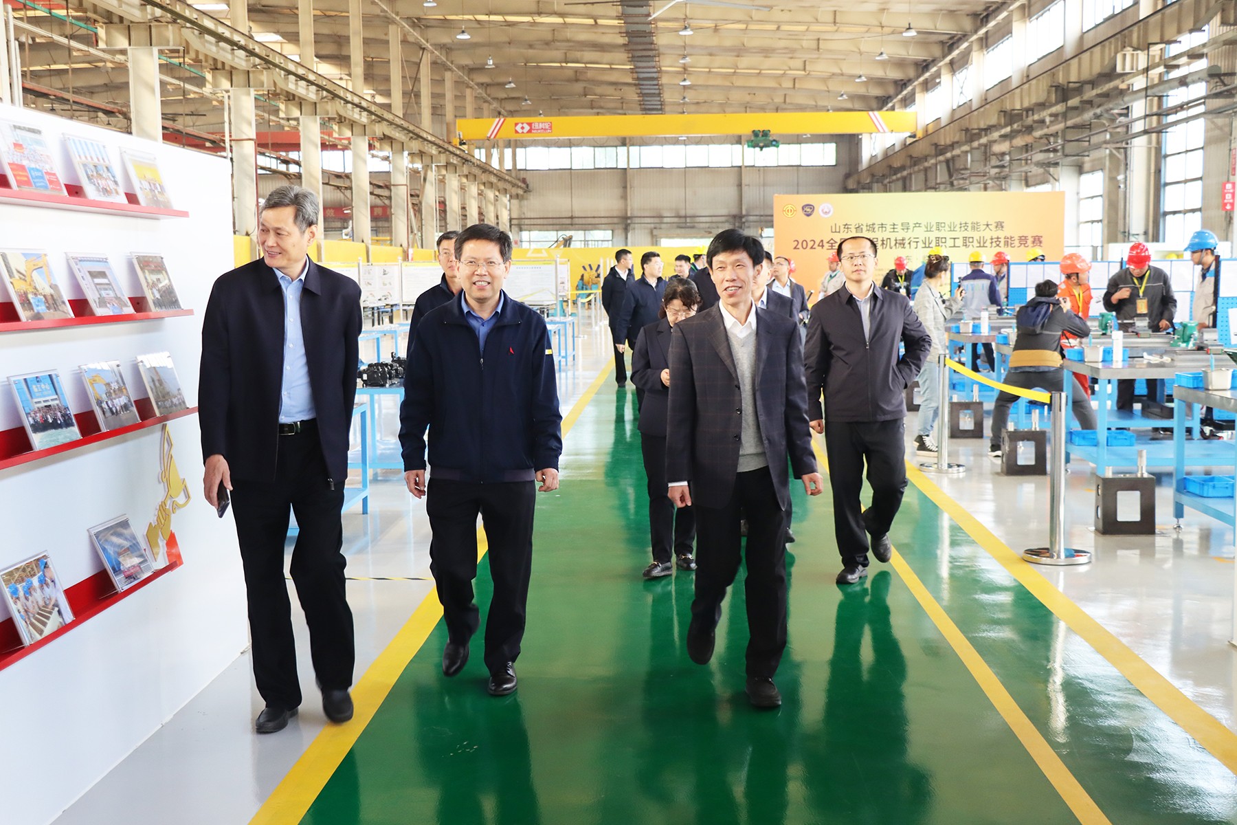 开幕式结束后,与会领导巡视竞赛实操现场,参观邱峰劳模创新工作室、装载机总装一车间、临工博物馆、临沂职业学院临沂市高端装备公共实训基地等。