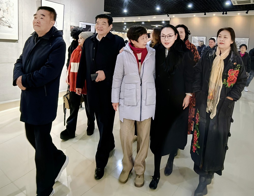 临沂市政协副主席、市民盟主委孟凡明,市政府原副市长慕增利,市政协原咨询李桂秀,市技师学院原党委书记、山东省沂蒙文化研究会首席专家冯增田,市文旅局原局长、二级巡视员曹首娟,市政协文史委主任王宗勤,市文化馆馆长张彦文,市政协文史委主任、山东省沂蒙文化研究会副会长刘建都,市中华职教社常务副主任迟明丛,市作家协会主席张岚,临沂一中原纪委书记、市老年体育协会书画专委会主任唐振荣,市广播电视台原副台长朱景涛市文旅局原副局长高志国市交警支队原副支队长吕超,临沂画院原院长、著名画家房新泉,市书画收藏家协会主席李军,中国工笔画学会常务理事、中国美术家协会会员、著名画家孙恺,临沂晋墨坊文化用品有限公司董事长、中国文房四宝协会副会长市文房四宝协会会长张兰波,山东省沂蒙文化研究会副秘书长、临沂市工作委员会主任王征,市青年书法家协会主席张健,市模特艺术协会会长桑亚丽中国美术家协会会员、著名画家杜石,富安娜临沂总代理李洪菊等以及参加这次展览的画家六姐妹刘玉英、王云霞、薛玉云、赵培莲、杨晓玲、庞菊梅等出席展览开幕式。