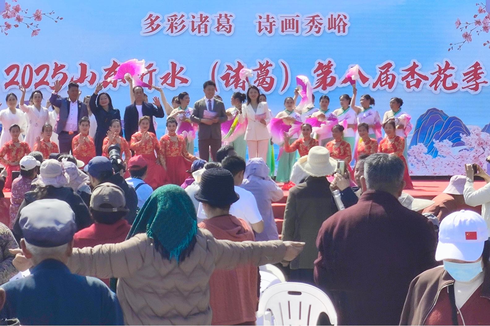 “超越电建杯”山地越野赛激情开跑,参赛者在花海中奋力驰骋,以脚步探寻乡村之美;声动诸葛—沂河谣乐队民谣专场歌声悠扬,为山野添浪漫氛围,游客沉醉其中;“齐风鲁韵・漫享春光”秀峪徒步活动,游客身着汉服置身杏花大道,仿佛穿越古今,人花相映成趣。