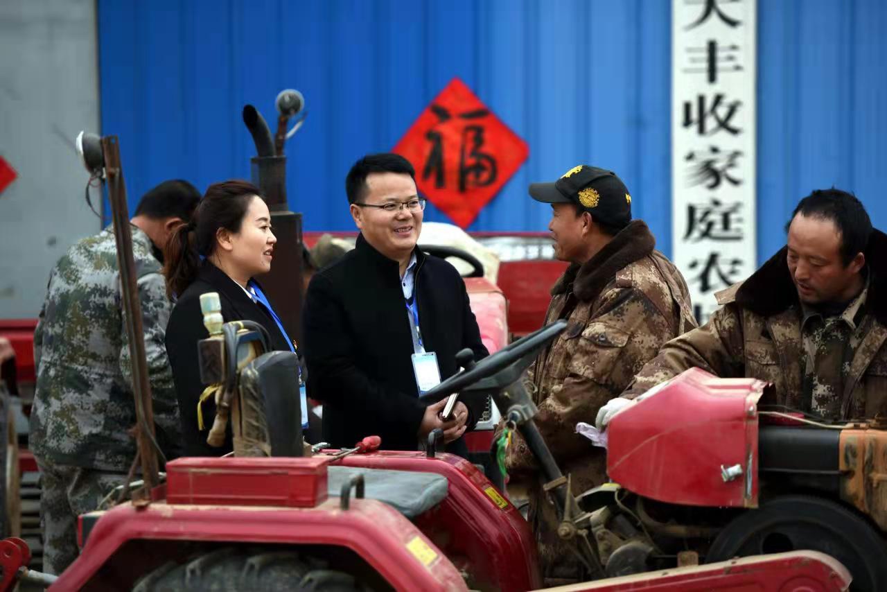 2022年2月9日,山东省临沂市郯城县纪委监委监督小组工作人员在马头镇大丰收家庭农场了解农机年审收费情况。